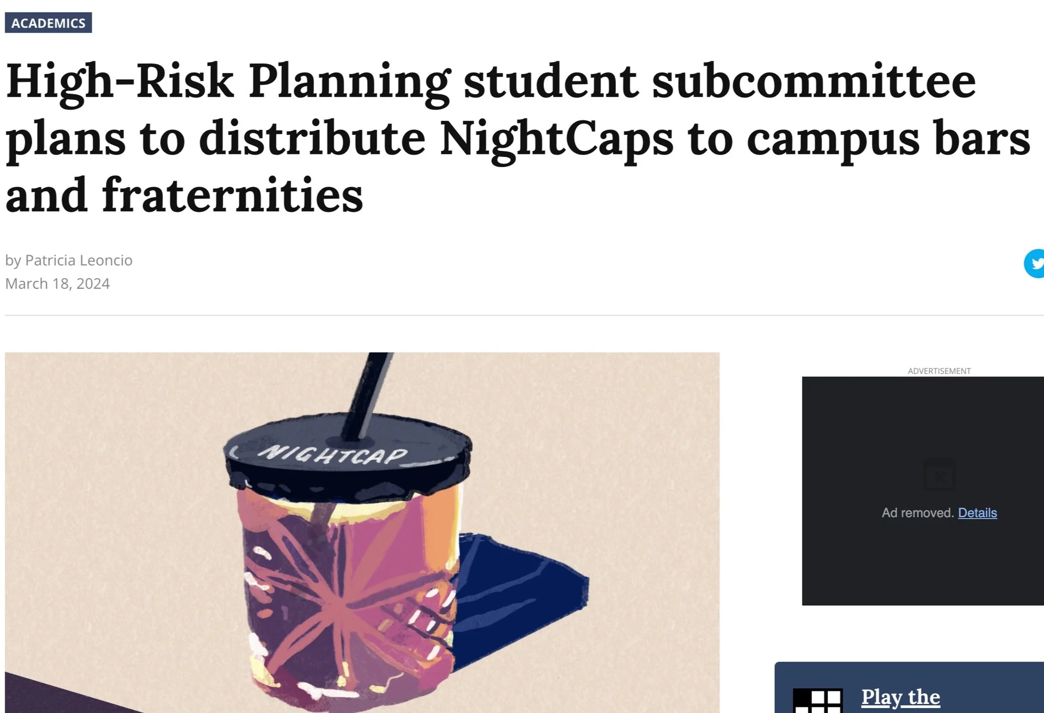 Our longest and most expansive project to date is our Nightcap Initiative. We aim to provide free drink covers, known as Nightcaps, in bars/restaurants around Ann Arbor. Nightcap drink covers help prevent occurrences of drink tampering. We can continue to provide drink covers at no cost to local businesses or students through funding this initiative!